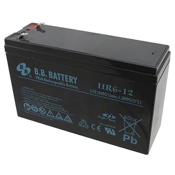 B.B. Battery HR6-12-T1 is designed for high rate discharge and its expected life is up to 5 years in float applications. HR6-12-T1 is a valve regulated lead acid battery that is maintenance free, non-spillable, and can be used in any orientation excluding inverted. HR6-12-T1 features Absorbent Glass Mat (AGM) technology for efficient gas recombination. Common applications for BB HR6-12-T1 batteries include electronic laboratory equipment, UPS Systems, toy-cars, power packs, fishing lights, and more.